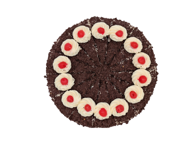 Der Klassiker des deutschen Konditorenhandwerks, täglich frisch in unserer Backstube auf Norderney für Sie gefertigt. Auf einem feinen Mürbeteigboden schichten wir dunkle Biskuitböden mit lockerer Kirschwasser-Sahne und einer fruchtigen Kirschfüllung. Vollendet wird die Torte traditionell mit einem Mantel aus dunklen Schokoladenraspeln sowie handgesetzten Sahnerosetten und Kirschen.